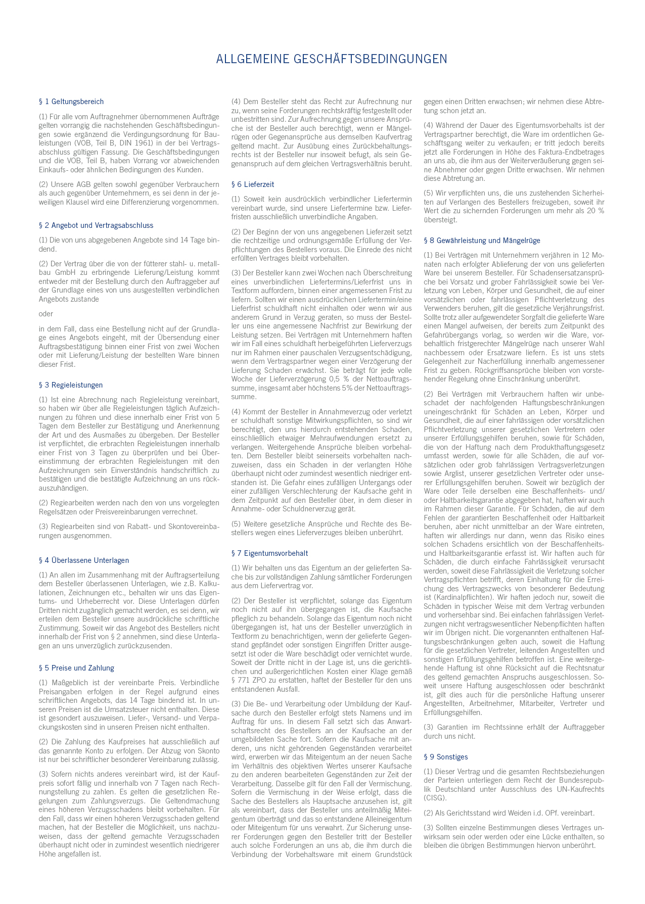 Allgemeine Geschäftsbedingungen der fütterer stahl- und metallbau GmbH