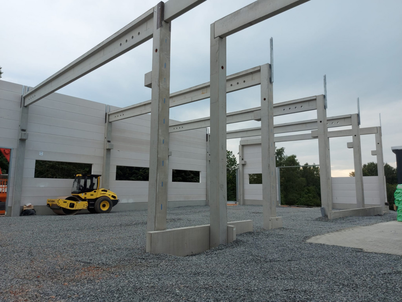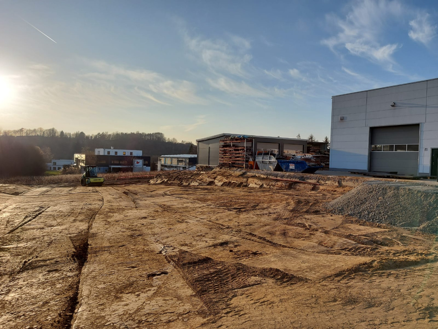 Bau der ersten Produktionshalle im Industriegebiet Wiesengrund in Neustadt/WN.